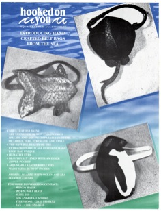 In the 80’s, Wendy was inspired to create her own version of what seemed to be around everybody’s waists at the time…the beltbag. As an activist in the environmental movement, she learned about a company, Aqua Leathers, who was tanning normally tossed out fish skins, into leathers. Her line, Hooked On You was born. Using actual stingray skin, she created a stingray bag and penguin bag with hematite eyes. King fish skin was used for a fish-shaped bag. She later expanded the line to include geometric shapes as well.