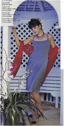 Wendy and Mimi DeBlasio partnered in a line of casual wear under the label La Bamba. Inspired by Lucile Ball, they “spoofed” her vintage swing coats by manufacturing one as a swim coverup in terry cloth…a first in such a fashionable way. They later went on to create the same swing style in eyelet, and a dressy version in black faille with velvet trim. Wendy and Mimi were the first designers to create what became the iconic lycra legging, bicycle pant, and midriff top.