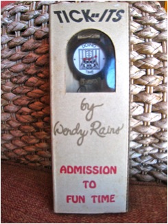 When Swatch Watches became all the rage, Wendy once again felt compelled to spoof their success. Temlex, Inc. licensed her designs under the Tik-Its label. Using Aqua Leathers for the colorful watch bands, the watch faces depicted images such as a prisoner “Doing Time”, male and female lips “Making Time”, a big fly “Time Flies”, etc. They were packaged in a cardboard box made to look like a movie box office window. A portion of her profits were earmarked for ocean causes.